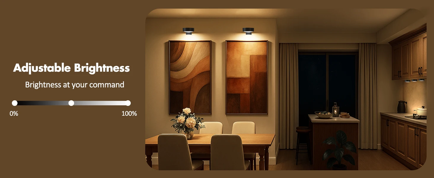 We understand the pain point needs of users, so we equip you with magnet sheets, 3M double-sided adhesive and screws. The picture light can be used flexibly (removable). Installation is very easy, no tools and wiring required, will not damage the wall. If you feel that the installation with double sided tape is not strong, you can use sturdy screws to install it
